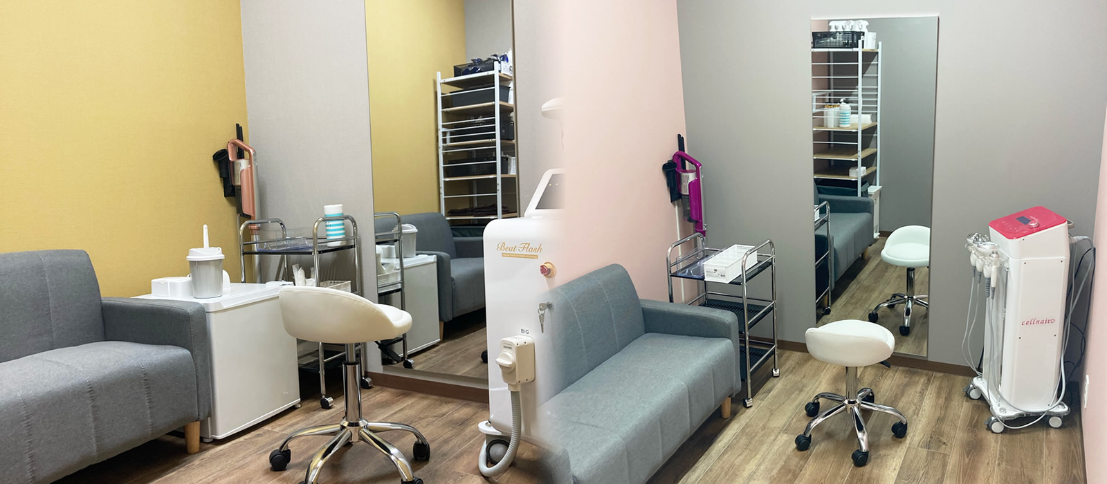 開錠施錠もスマホでできるので受付もいません。誰にも会わずこっそりと脱毛やエステできます。 機械もエステサロン、脱毛サロンで使用している業務用なので効果も抜群です。完全セルフなのでどこよりもお得に利用できます。